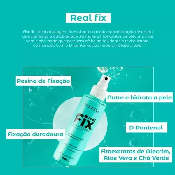O Real FIX é um fixador de maquiagem formulado com alta concentração de resina que aumenta a durabilidade da make e fixa por horas.