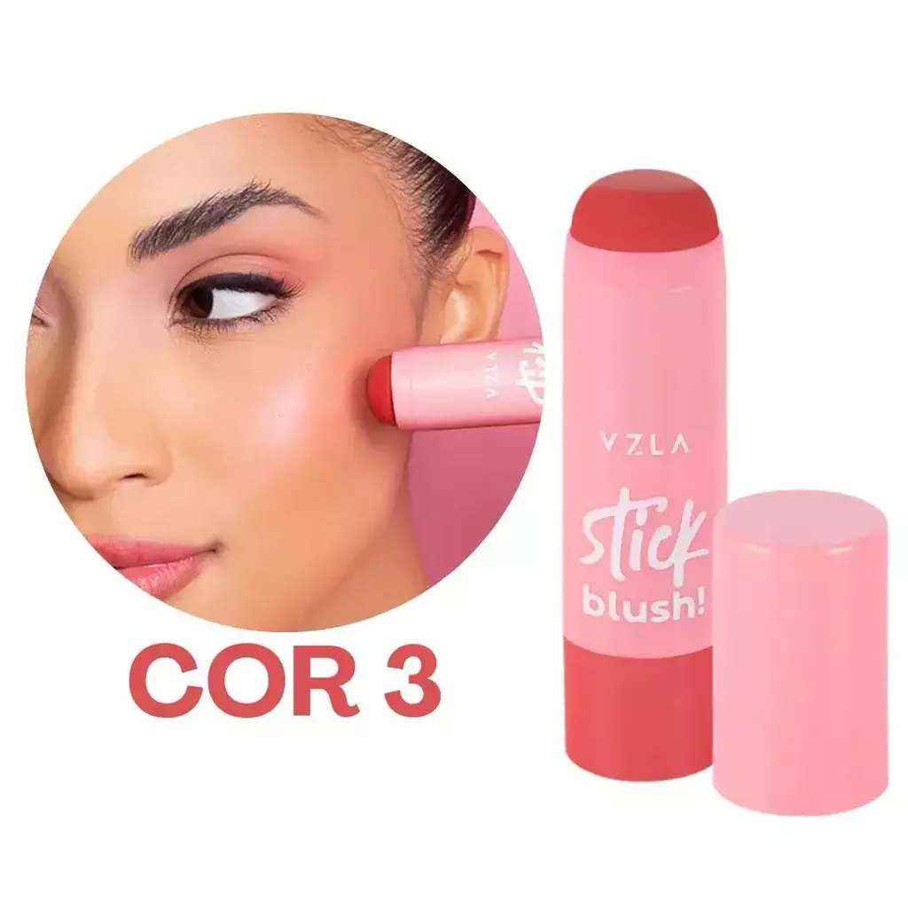 o blush stick vizzela possui 4 cores versáteis e que também podem ser aplicados como sombra e batom para uma maquiagem monocromática.